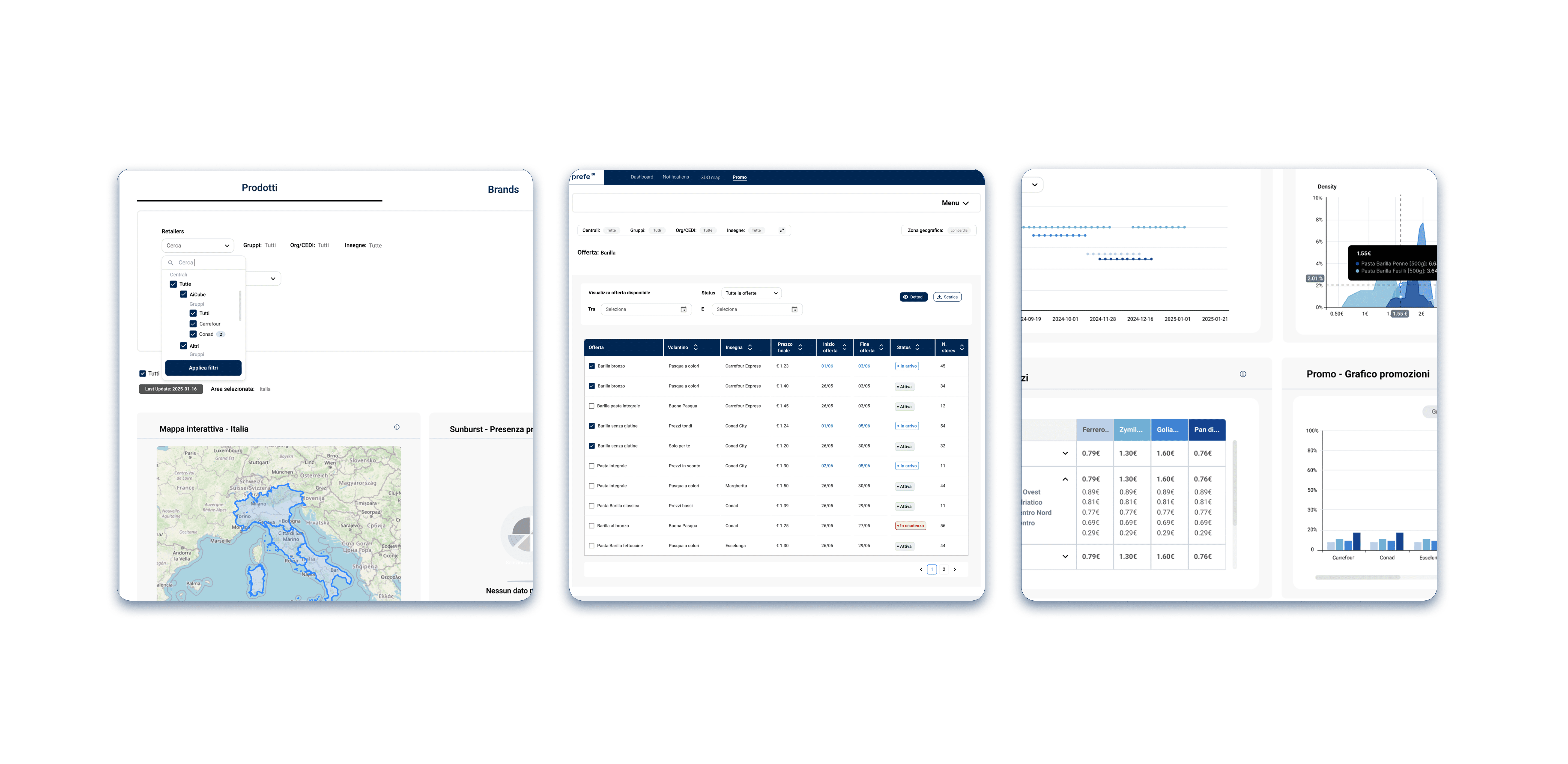 Tieni traccia delle promozioni attive su tutti i canali della GDO. Ottieni visibilità sulle strategie dei competitor e valuta le performance promozionali del tuo brand.